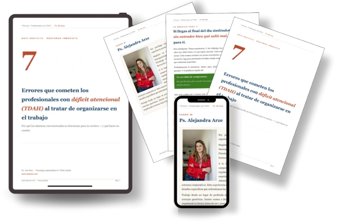 Además de mi práctica clínica, trabajé varios años en entornos corporativos. Esta experiencia me permitió ver y vivir en primera persona los desafíos específicos que enfrentan los adultos con TDAH en el trabajo: las reuniones interminables, los plazos múltiples, las expectativas de organización "convencional", la sobrecarga de emails, y las dinámicas de equipo que no siempre consideran diferentes estilos de trabajo.